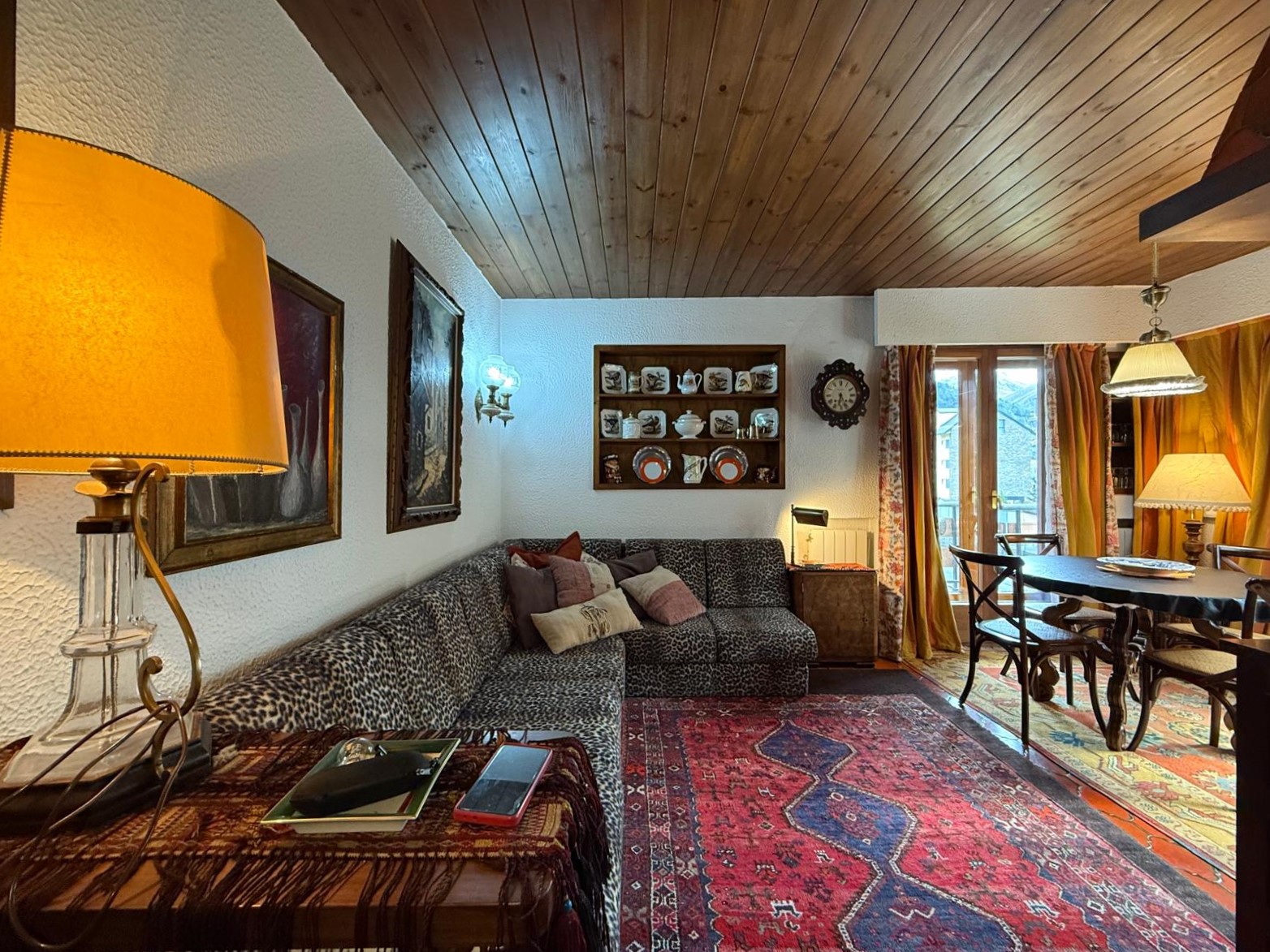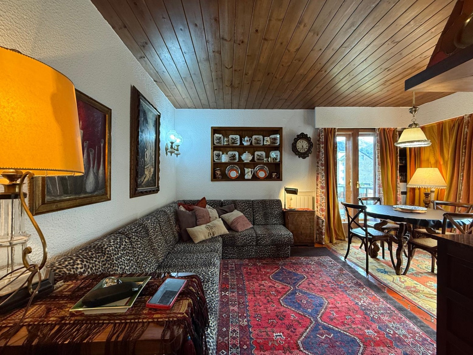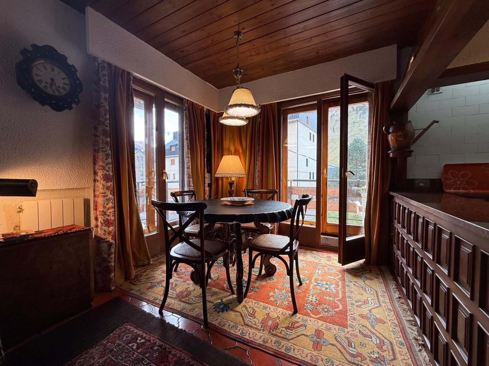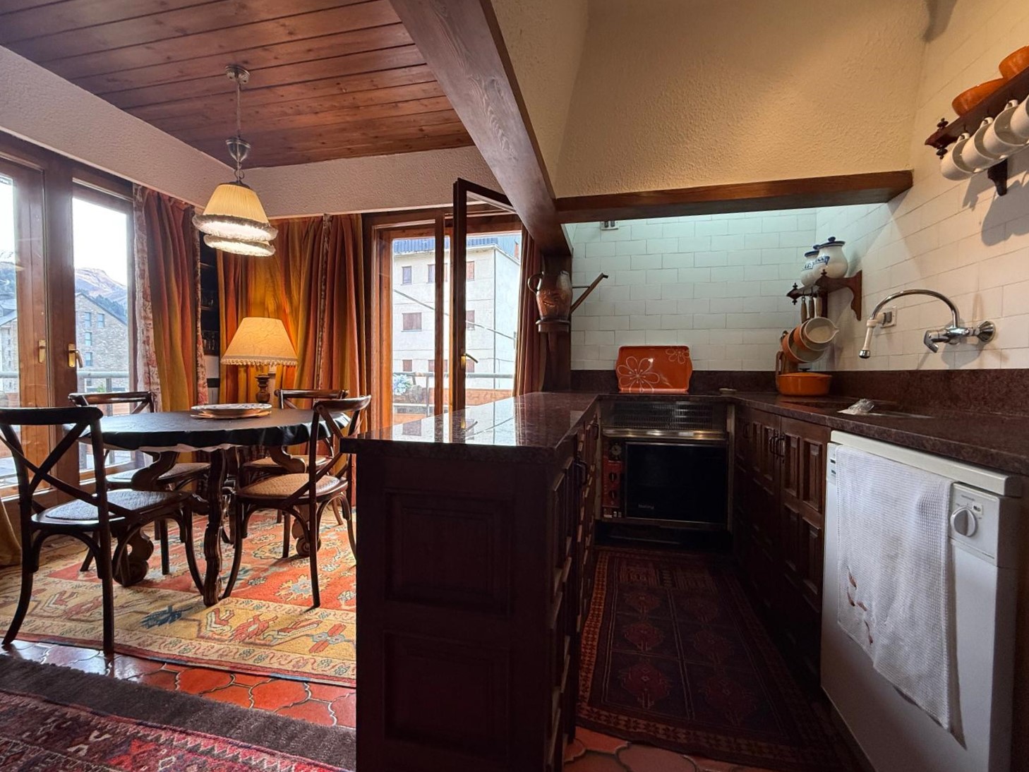 El amplio salón, con una cocina abierta de estilo alpino y totalmente equipada, es el espacio perfecto para compartir momentos inolvidables con familia y amigos. Desde aquí, accede a una maravillosa terraza orientada al sur, donde podrás deleitarte con impresionantes vistas de las pistas de esquí y las majestuosas montañas que rodean la zona. La luminosidad inunda cada rincón del apartamento durante todo el día, creando un ambiente cálido y acogedor.
